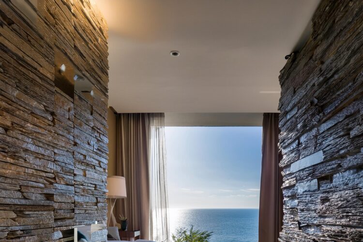 Otel projelerinde doğal taşlar, dekoratif paneller ve peyzaj taşları gibi malzemeler, hem iç hem de dış mekanlarda estetik, dayanıklılık ve lüks bir atmosfer sağlar. Otelin dış cephesinde kullanılan doğal taşlar, hem zarif hem de sağlam bir yapı sunar.